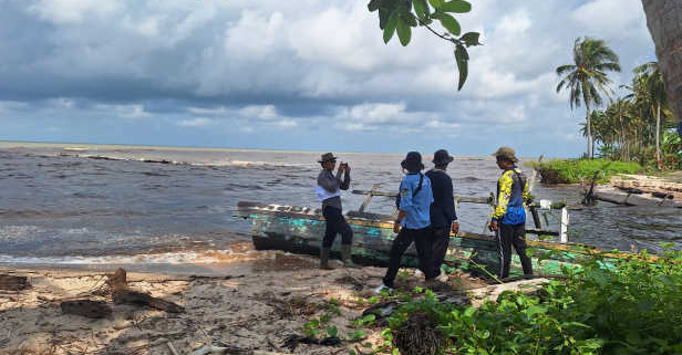 Tim melakukan penelusuran di beberapa segmen garis pantai yang terdampak abrasi. Menggunakan perangkat GPS, titik-titik koordinat lokasi abrasi dicatat secara akurat. Selain itu, kondisi fisik abrasi diamati secara visual untuk menilai potensi dampaknya terhadap permukiman, vegetasi pantai, dan fasilitas publik. Seluruh temuan juga didokumentasikan secara fotografis dan deskriptif di lapangan.